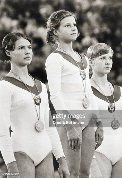 La imagen de las banderas, a la izquierda muestra que los tres primeros puestos han sido ocupados por deportistas que representaban a la ex Unión Soviética. Particularmente corresponde a la coronación de gimnasia artística durante los juegos olímpicos de Munich en 1972 donde las ganadoras fueron Olga Korbut, Ludmilla Tourischeva, y Tamara Lazakovich. A esta situación se la denomina “podio completo”, y se ha repetido en varias competencias.